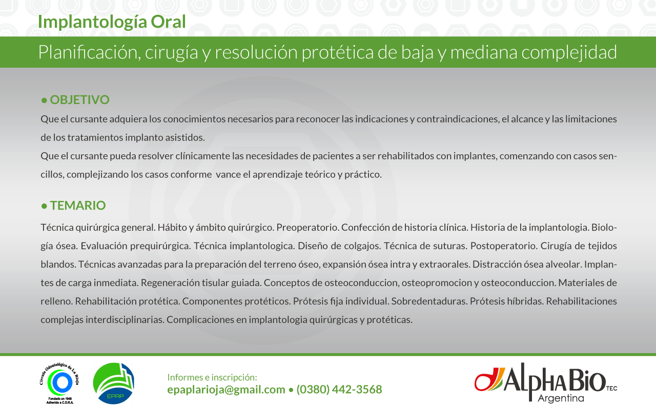 Planificación, cirugía y resolución protéica de baja y mediana complejidad. Dr. Carlos Cabral; Co Directores: Dr. Marcelo Cerullo / Dr. Andrés Bugatto.
