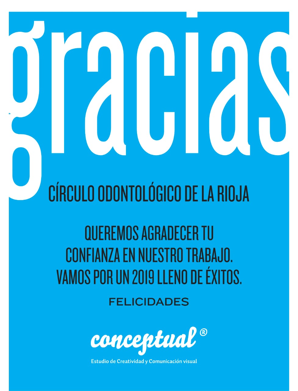 El Estudio de Creatividad y Comunicación Visual " CONCEPTUAL" con la dirección del Lic. Alfredo Parada Larossa agradece al COLR por participar en la parte publicitaria y difusión en el 2do Congreso Odontológico Interdisciplinario desarrollado por nuestra institución, con la participación de un gran numero de asistentes y disertantes, durante el mes de Octubre próximo pasado en nuestra ciudad.